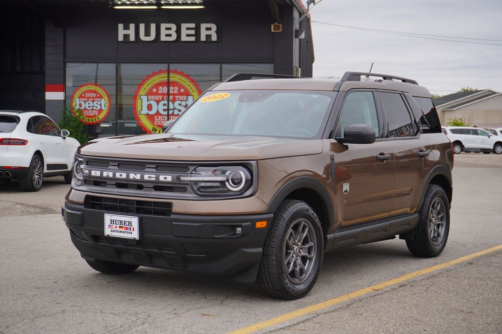 Huber Automotive is proud to offer this 2022 Ford Bronco Sport Big Bend with just 86K miles. It comes finished in Bronze Smoke Metallic over a ebony cloth interior. 4WD 8-Speed Automatic 1.5L EcoBoost 2022 Ford Bronco Sport Big Bend in Bronze Smoke Metallic, Sought After Options Include, Air Conditioning, AM/FM Stereo, Class II Trailer Tow Package w/Trailer Sway Control, Convenience Package, Equipment Group 200A, Front Driver & Passenger Seatback Zipper Pockets, Heated Front Bucket Seats, Intelligent Access (Lock/Unlock), Leather-Wrapped Steering Wheel, LED Fog Lamps, Rear Parking Sensors, Remote keyless entry, SiriusXM Radio, SYNC 3 Communications & Entertainment System, SYNC 3/Apple CarPlay/Android Auto, Universal Garage Door Opener (UGDO), Wheels: 17" Carbonized Gray-Painted Aluminum, Wireless Charging Pad.