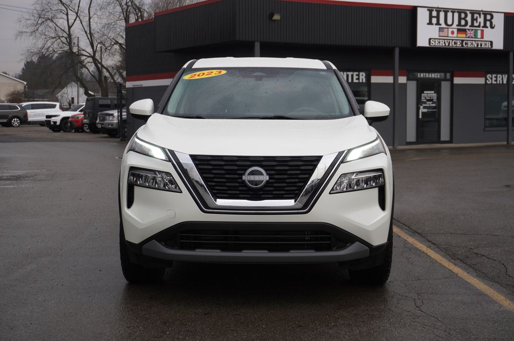 Huber Automotive is proud to offer this 2023 Nissan Rogue SV with just 34K miles. It comes finished in Pearl White Tricoat over a charcoal cloth interior. AWD CVT with Xtronic 1.5L I3 Turbocharged DOHC 12V LEV3-ULEV50 201hp 2023 Nissan Rogue SV in Pearl White Tricoat, Sought After Options Include, AWD, 18" Aluminum Alloy Wheels, AM/FM radio: SiriusXM, Auto High-beam Headlights, Delay-off headlights, Front Bucket Seats, Front dual zone A/C, Fully automatic headlights, Rear Parking Sensors, Remote keyless entry.